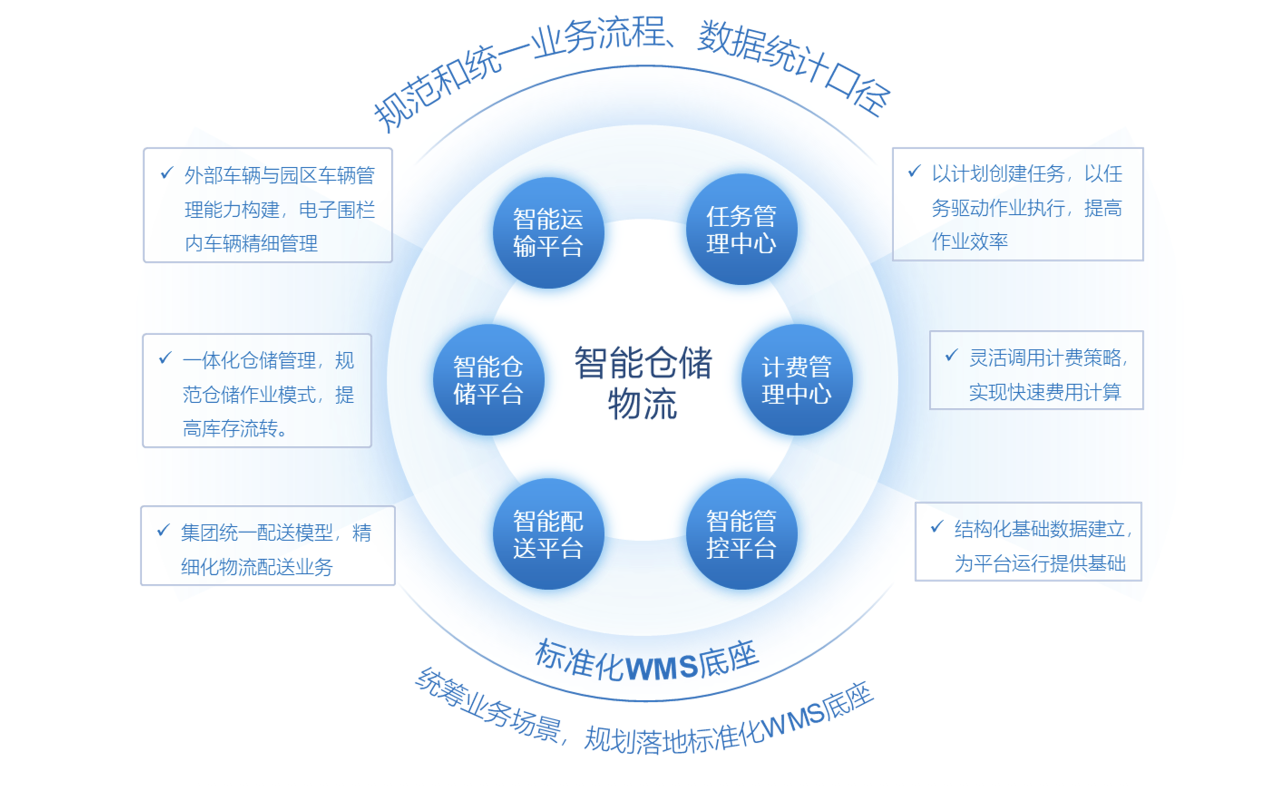 融合汽车行业仓储业务众多场景业态(平库、货架、立库等),涵盖物流业务多种模式(JIT/JIS/KANBAN/SPS等)