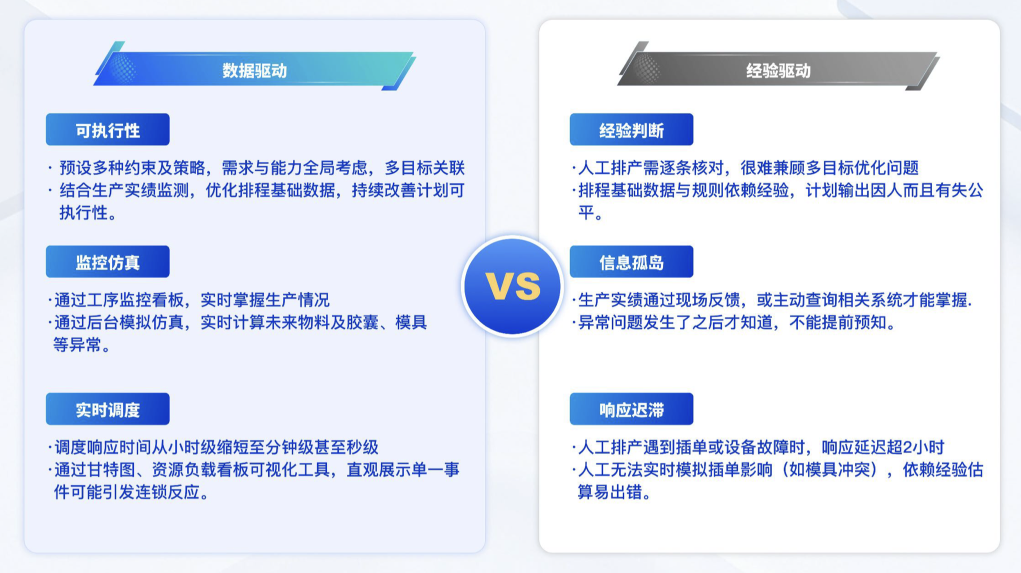 传统方式不足:依赖人工经验的静态排产模式,往往无法动态响应,难以适配轮胎行业这种“多约束、高波动、强协同”的排产需求。