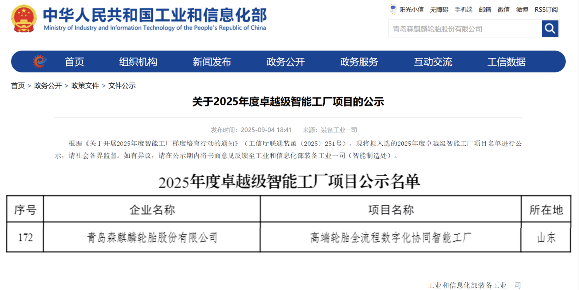 近日,国家工业和信息化部正式公布《关于2025年度卓越级智能工厂项目的公示》。鑫海智桥某轮胎行业客户凭借其“高端轮胎全流程数字化协同智能工厂”成功入选,在智能制造领域获得了国家高层级产业政策的权威背书。