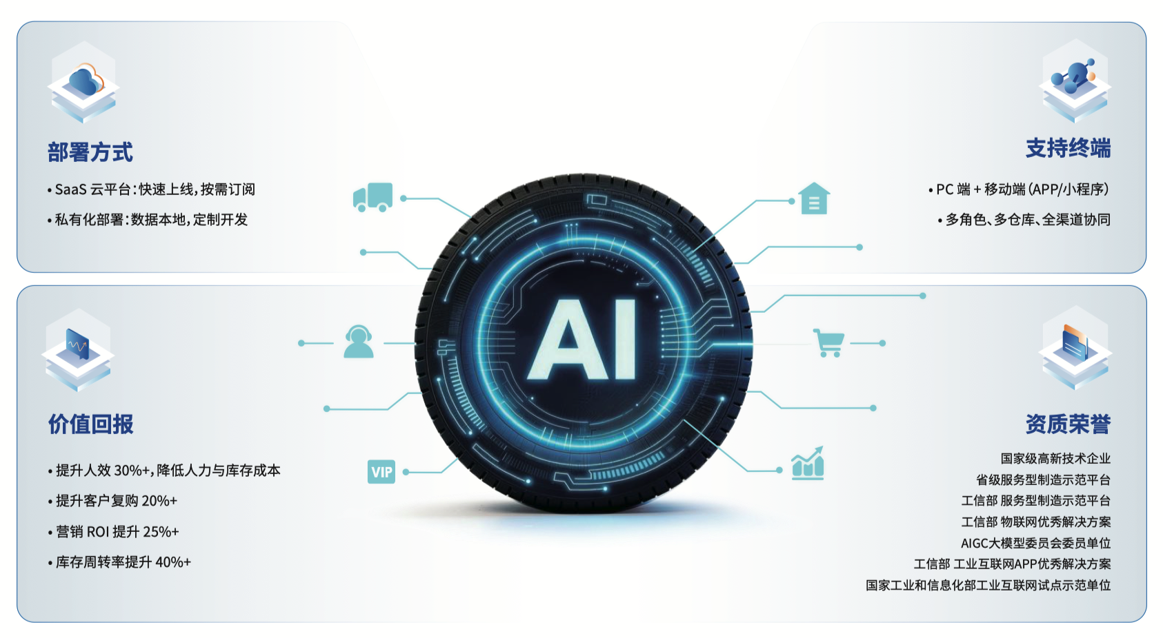 适配轮胎分销全场景,功能模块可灵活适配不同业务需求