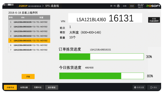 拣选作业进行过程控制,实时显示作业进度。