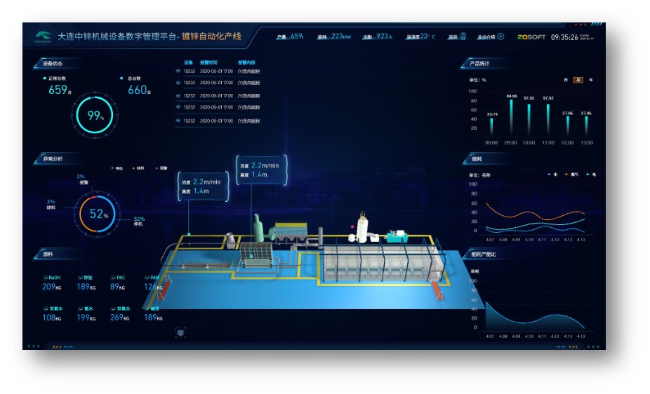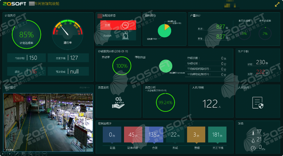 监控车间生产、物流、质量、设备等生产相关状态信息