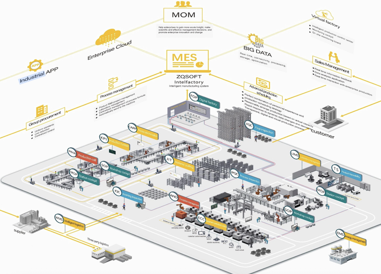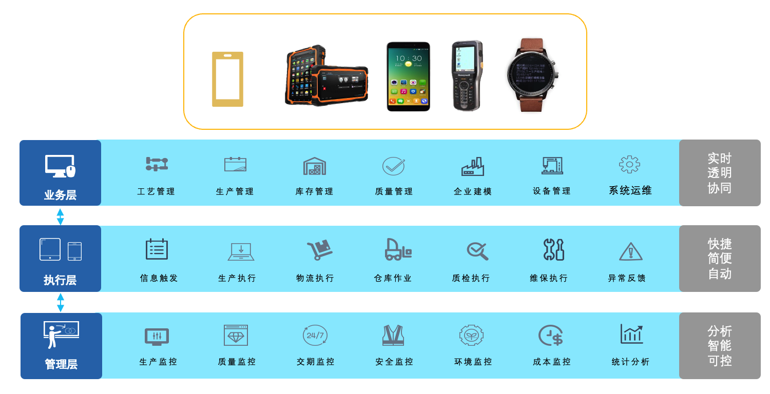 工业大数据智能驱动,连接人员、系统和设备,业务流程自动执行,管理数据全面追踪,重要事务智能分析