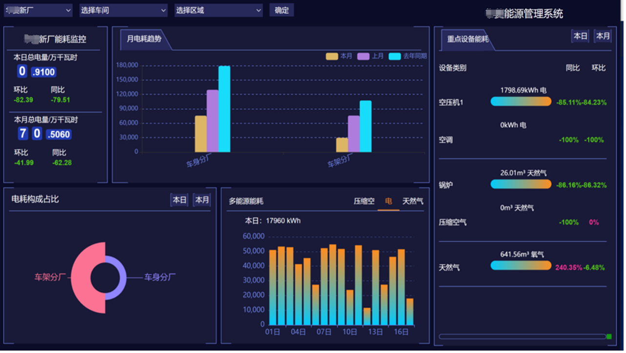 能源管理系统利用现代化计算机技术以及分布式控制技术,在工厂建立起完整的能耗管控平台,对工 厂内的水、电、气(压缩空气、煤气、燃气、蒸汽)等各类能耗分类监控。