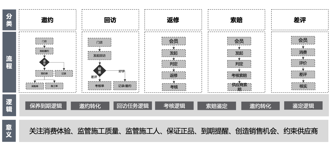 自动化回访:系统按规则(如消费后后3天)自动回访任务,门店SA按照规则进行回访执行。
