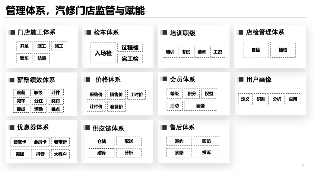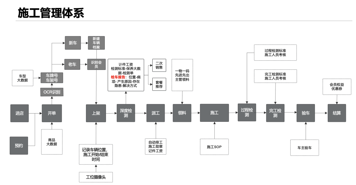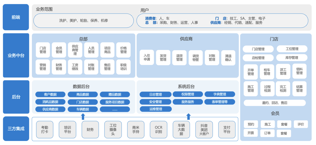 门店端:集成接车、开单、施工、采购、库存、财务、客户管理等功能,是门店日常运营的核心工作站。