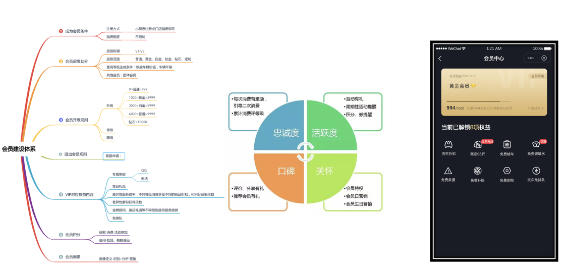 积分体系:消费得积分,积分可兑换服务、配件、优惠券等。