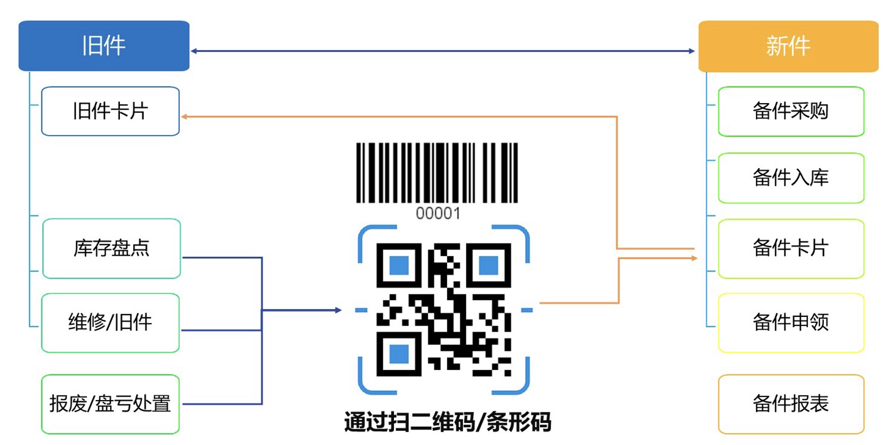 采用二维码技术,实现快速录入、快速查询备件信息功能。