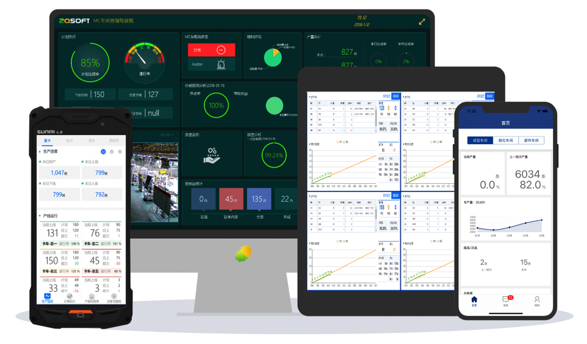 监控车间生产、物流、质量、设备等生产相关状态信息